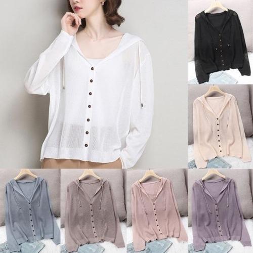 [엄지척]여성 여름 바닷가 휴양지 니트 후드 브이넥 가디건_19800539_667501