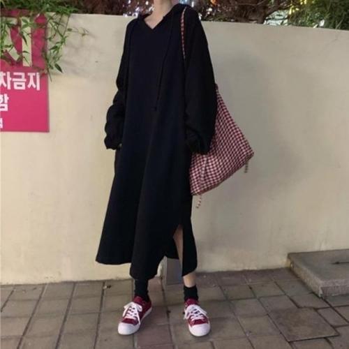 [신상오픈런]|CMO453A|벨메리 미니멀 검정 윈터 후디 긴원피스 V넥 여성_18170524_597559
