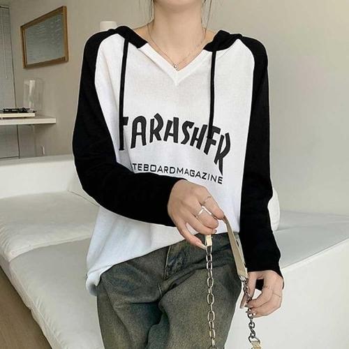 JIEVE 여성용 후드티셔츠 봄가을용 심플한 스타일 브이넥 하트 자수 캐주얼 후드 Z16