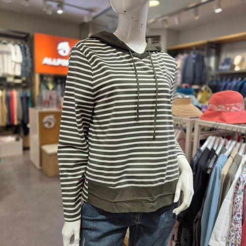 [올포유]여성-가볍고 부드러운 터치감의 코튼폴리 혼방소재/후드 밑단 우븐 배색 포인트 브이넥 시보리 ..