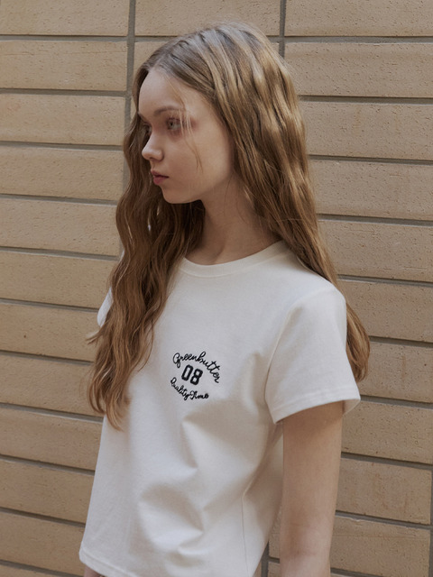 [그린버터] Crop Cursive Tee (Ivory)