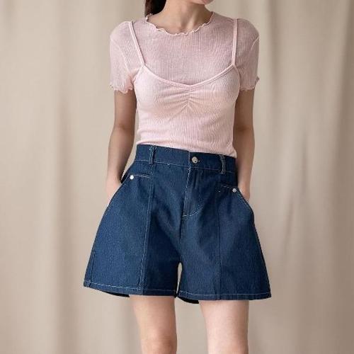 [아우트]숏팬츠 A라인 청반바지 롤업 데님 반바