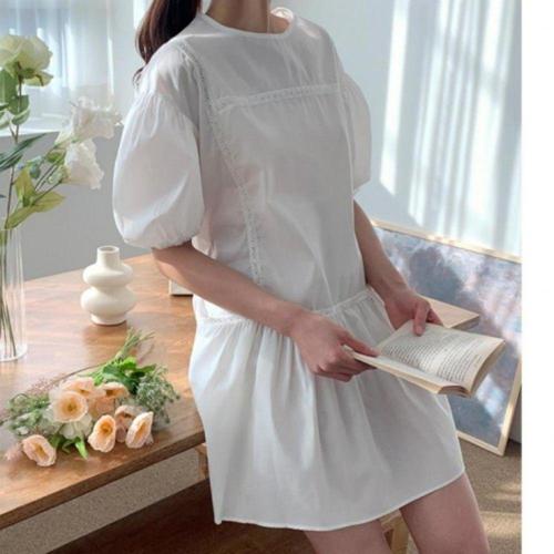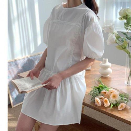 [오너클랜]인기상품 화이트 펀칭 미니 원피스 반팔 여름 A라인 플레어 루즈핏 [WFLL9OO_260304]