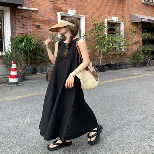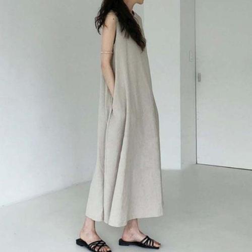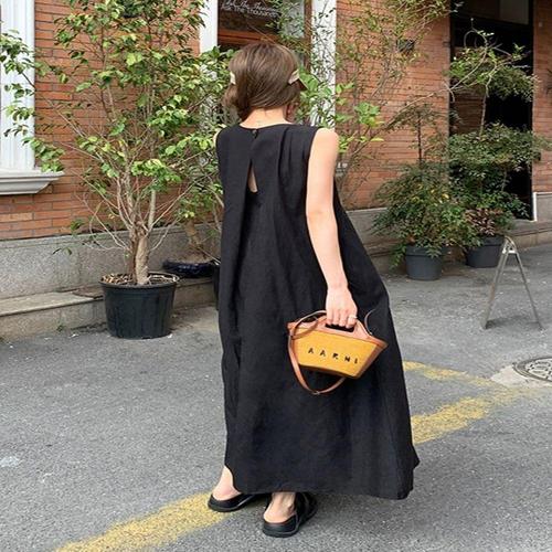 [오너클랜]인기상품 썸머 루즈 A라인 양포켓 슬리브리스 롱드레스 [WFLKQU1_260303]