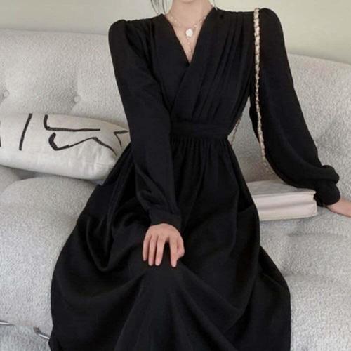 [오너클랜]인기상품 여자 2컬러 우아한 브이넥 주름 A라인 롱원피스 [WFLHTIH_260208]