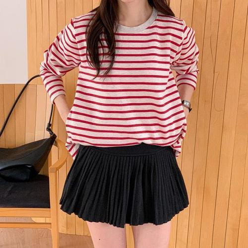 [신상오픈런]여성용 털안감 스트라이프 오버사이즈 포켓 A라인 면 티셔츠 (45899554)
