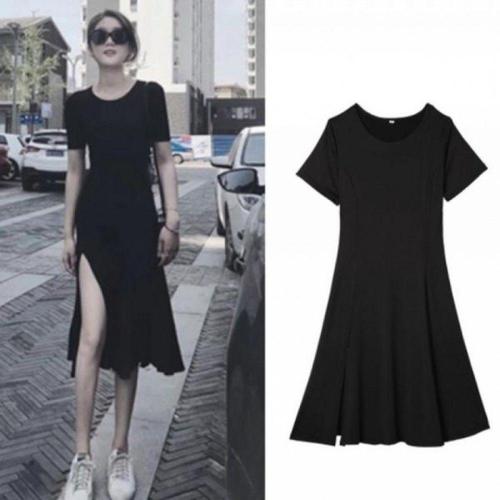 [오너클랜]인기상품 블랙 A라인 트임 반팔 루즈핏 데일리 원피스 [WFLIP2U_260301]