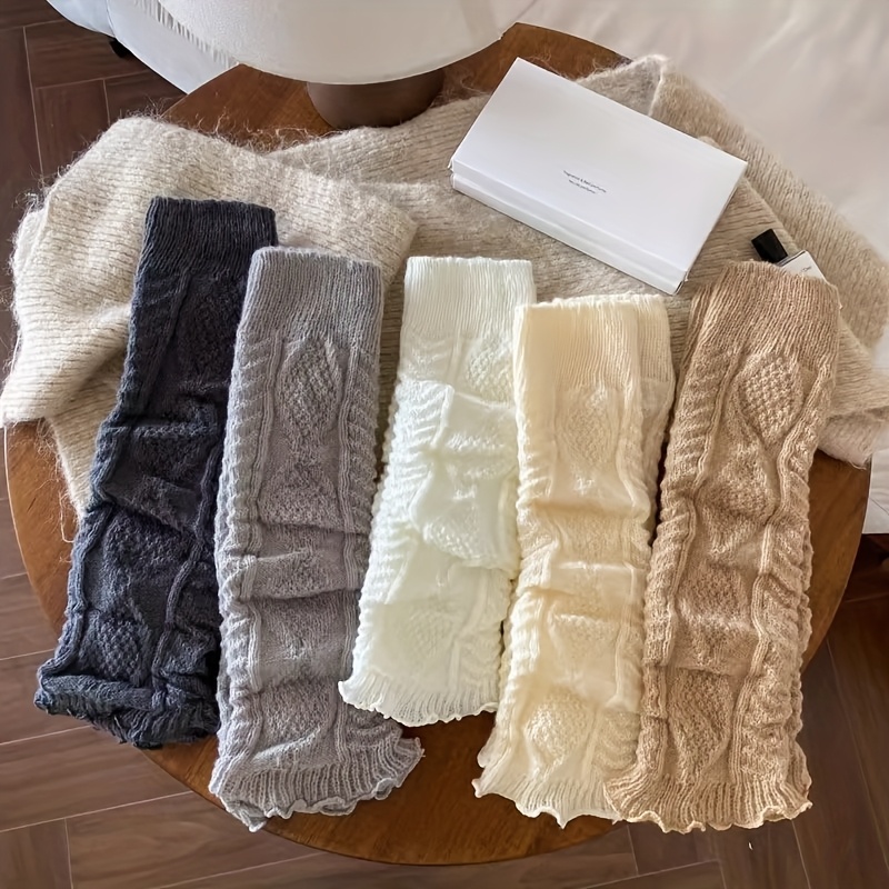 TEMU 여성용 겨울 따뜻한 보온 레그 워머 5켤레 - 엑스트라 롱 OTK (오버 더 니) 양말, 러플 헴 & 커프, 부드러운 플러시 질감, Y2K 스타일, 손세탁/드라이 클리닝 - 멀티 컬러 옵션 (핑크, 그린, 퍼플, 회색, 브라운, 네이비, 버건디, 올리브), 발토시 여성 여름용, 여름발토시