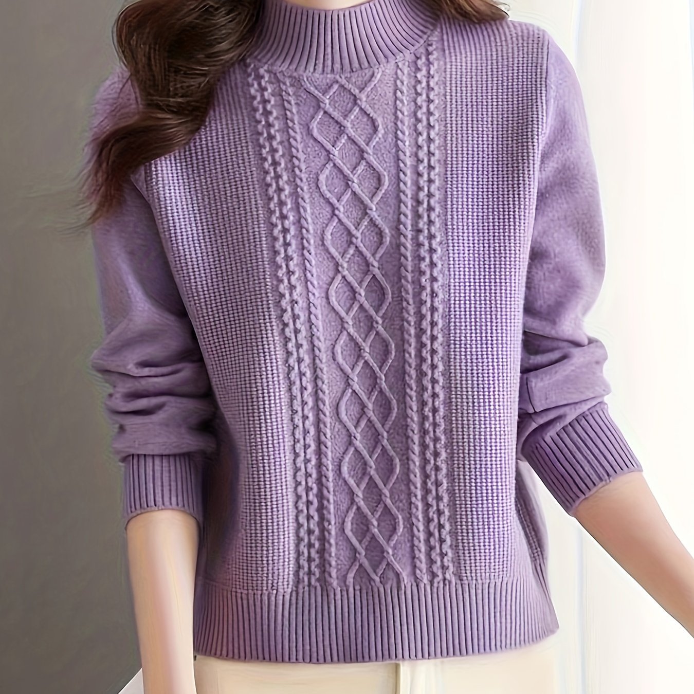 TEMU 아가일 케이블 니트 모크넥 스웨터, 가을 & 겨울 캐주얼 롱슬리브 스웨터, 여성 의류
