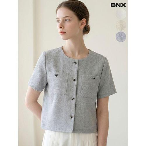 [BNX]여성 하트 버튼 라운드 반팔 트위드 자켓