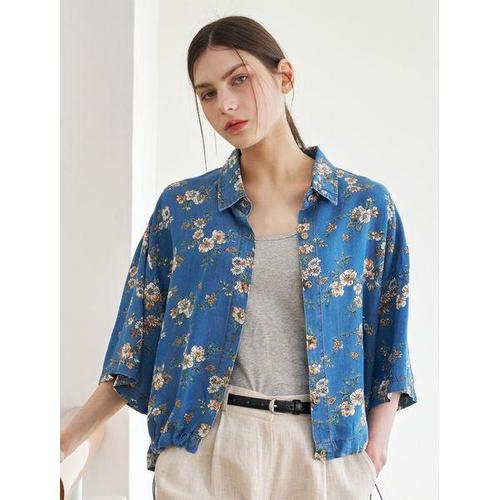 [BNX]플라워 프린팅 스트링 데님 반팔 셔츠 (BY1BL023L0)