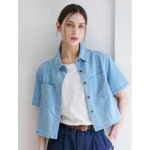 [BNX]포켓 크롭 데님 반팔 셔츠 (BY2BL003L0)