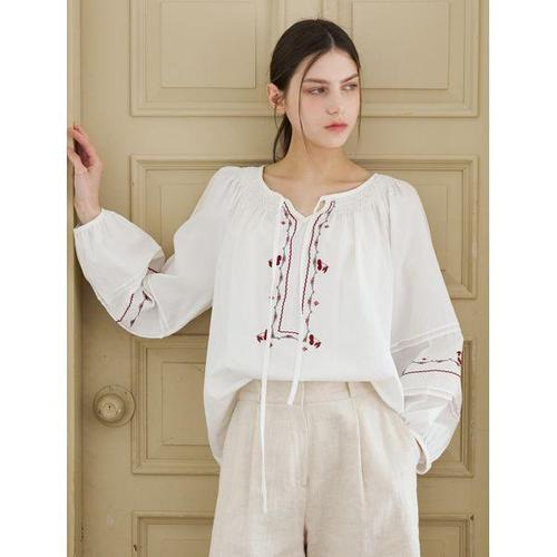 [BNX]라운드넥 스트랩 자수 블라우스 (BY1BL020L0)