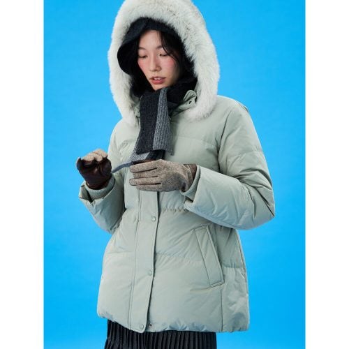 [빈폴레이디스]폴리 퍼 후드 미디엄 사파리 다운 점퍼 카키 (BF4X38C09H)