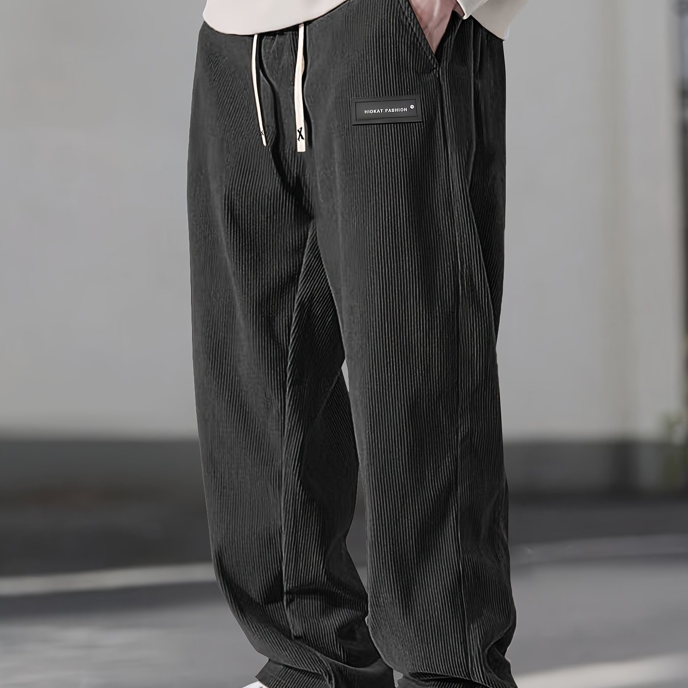 TEMU HIDKAT 남성 코듀로이 팬츠 솔리드 컬러 부드럽고 통기성 좋은 캐주얼 바지 드로스트링 허리 & 미드라이즈 레귤러 길이 사계절 편안한 캐주얼 복장 (코듀로이 캐주얼 팬츠)