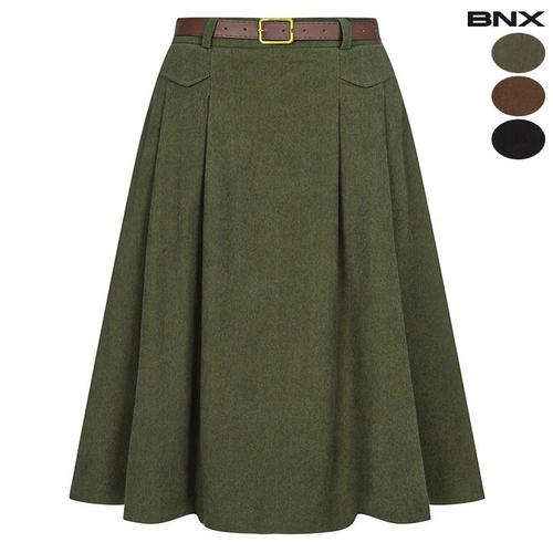 [비엔엑스]여성 골덴 벨트세트 플레어 스커트