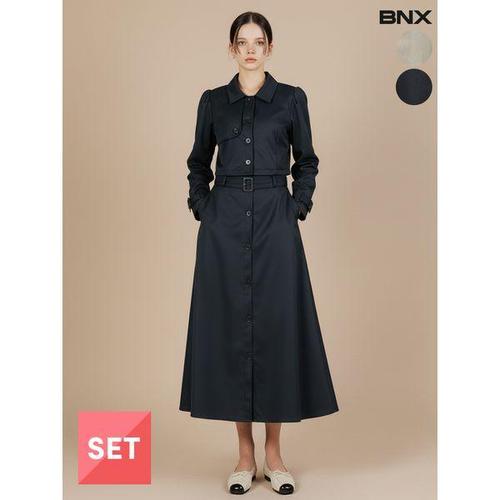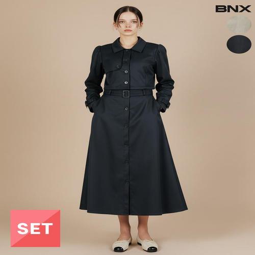 [BNX]여성 트렌치 벨트 크롭 자켓 스커트 셋업