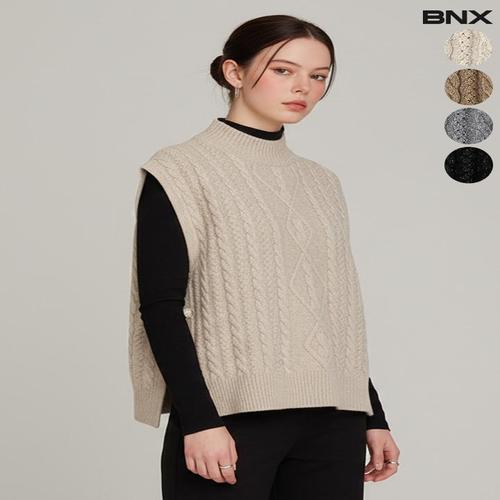 [비엔엑스]여성 케이블 슬리브리스 니트