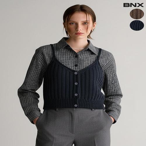 [BNX]여성 체크셔츠 니트조끼 세트