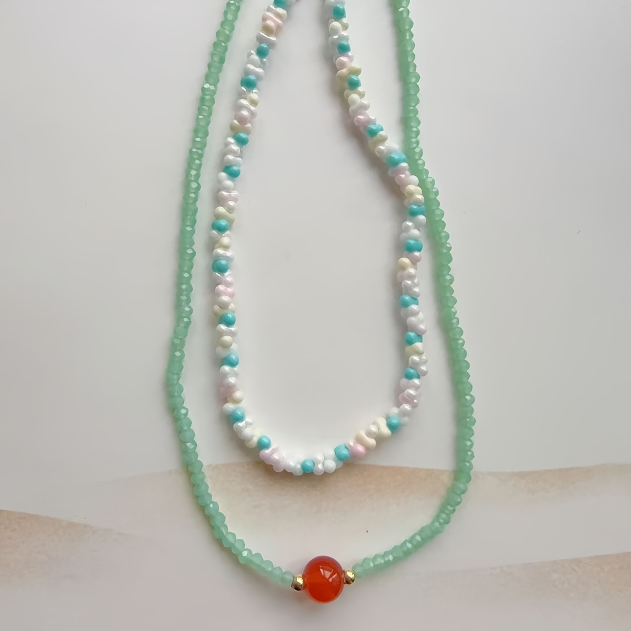TEMU 레이어드 비즈 투피스 세트|목걸이|비즈목걸이