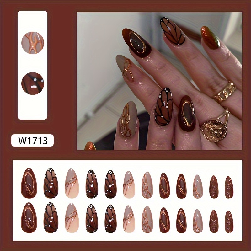 TEMU 해외 수출용 나비 날개가 있는 탈착식 3D 물결 패턴 인조 손톱 24개입