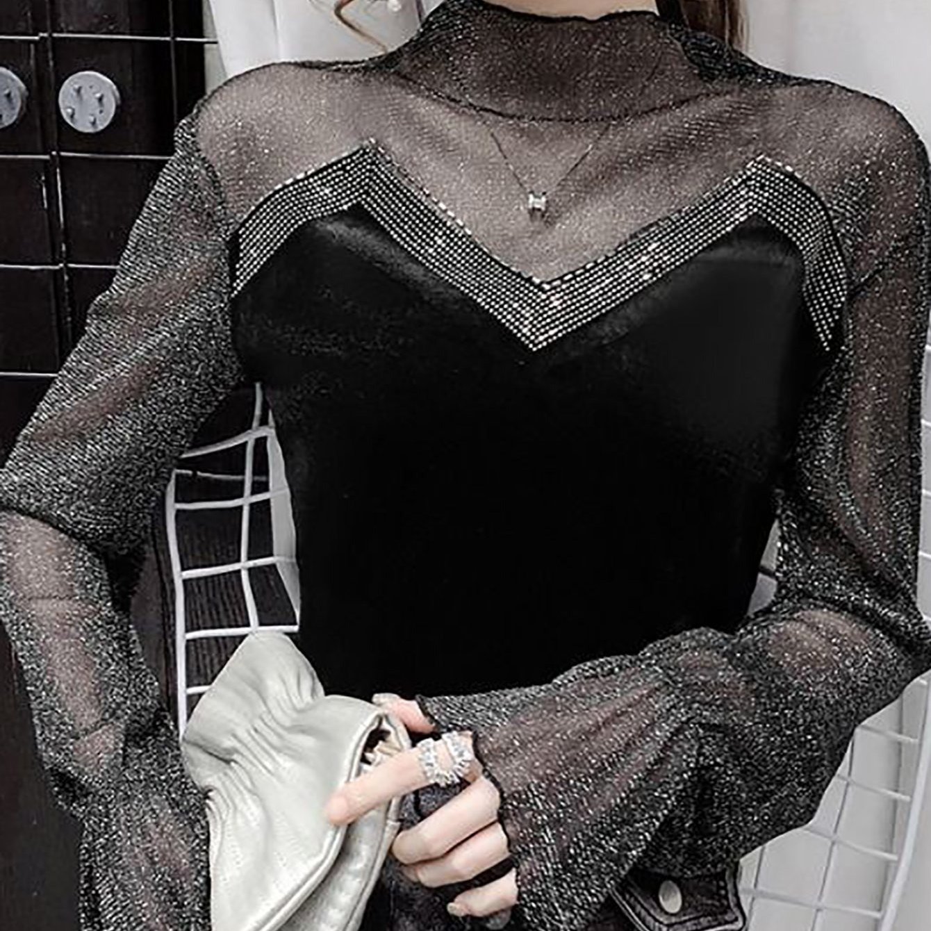 TEMU 여성 봄가을 셔링 블라우스 프릴넥 데일리 시스루 긴팔 티셔츠 엘레강스 하이넥 캐주얼 패션 통근 프릴 상의 SLIM GIRL 슬림소녀