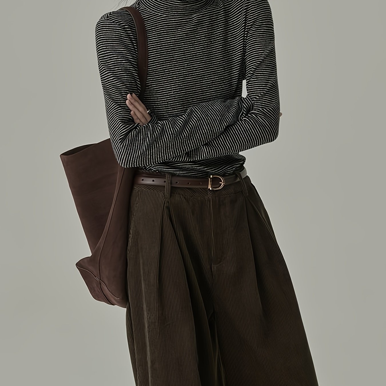 TEMU 여성용 우아한 하이넥 긴팔 티셔츠 - 부드럽고 신축성 있는 원단, 가을/겨울용 슬림핏 상의, 오피스, 파티
