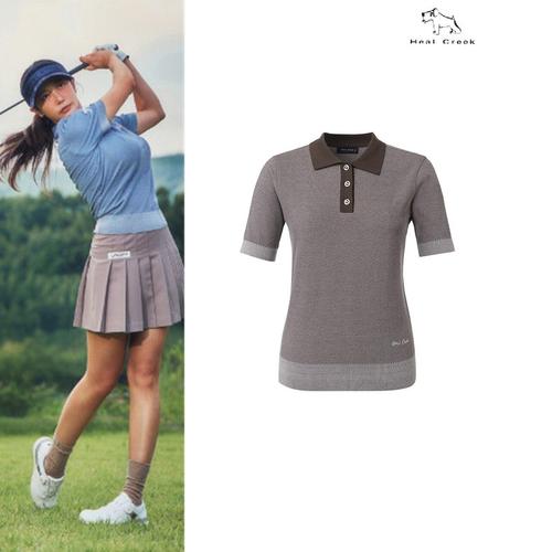 [힐크릭]여성골프웨어 골프니트 여성 가을 골프니트 헨리 반팔카라스웨터 1HCSWFU582CCR