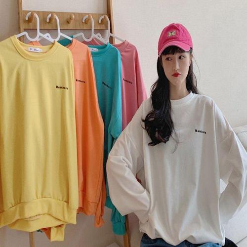 여성 컬러풀 베이직 남여공용 맨투맨 여유핏 긴팔티 WD1E5B8
