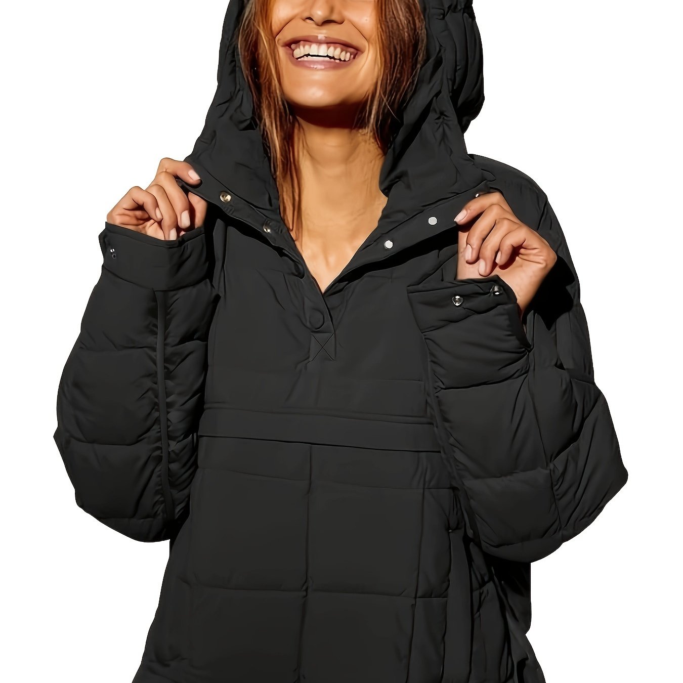 TEMU 여성용 경량 후드 겨울 재킷 - 블랙, 포켓이 있는 캐주얼 통근 코트, 긴 소매, 나일론 소재, 가을과 겨울에 완벽한 추운 날씨 의류 | 자켓 | 내구성 있는 지퍼