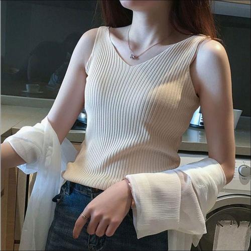 여성 브이넥 니트 나시 이너 민소매 골지니트 슬림핏 WFL3GHD
