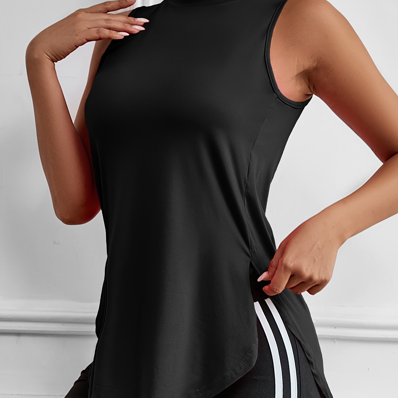 TEMU D1059-1# 야외 스포츠 민소매 불규칙 사이드 슬릿 롱 하이- 멀티 컬러 요가 캐주얼 탱크 탑|민소매