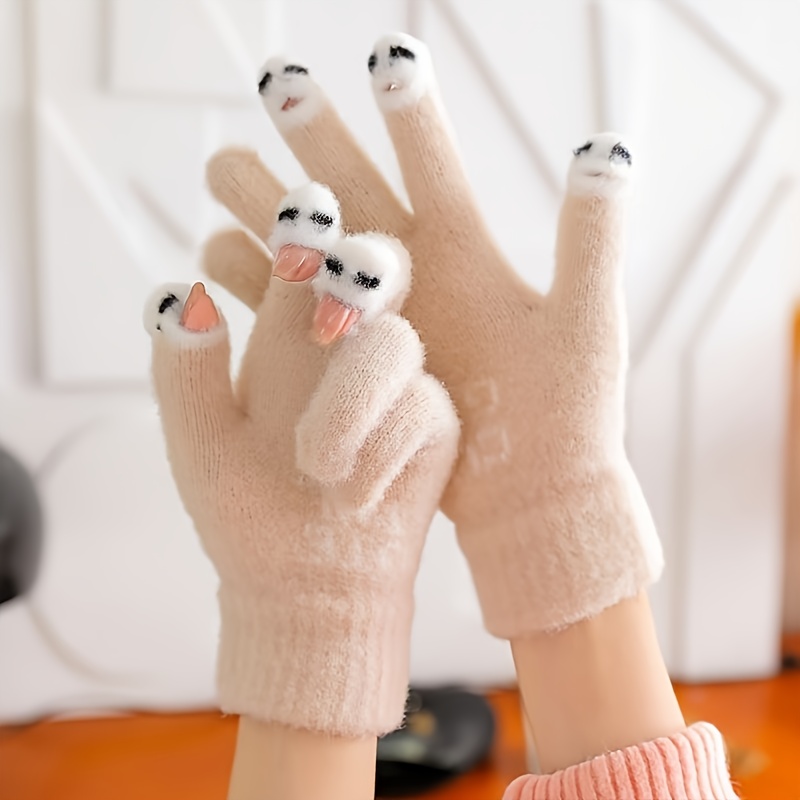TEMU 4계절 장갑, 여성용 귀여운 만화 터치스크린 겨울 장갑, 따뜻한 기모 안감으로 야외 활동 및 일상 사용에 적합 - 탄성 있는 풀 핑거 디자인, 추운 날씨 장비