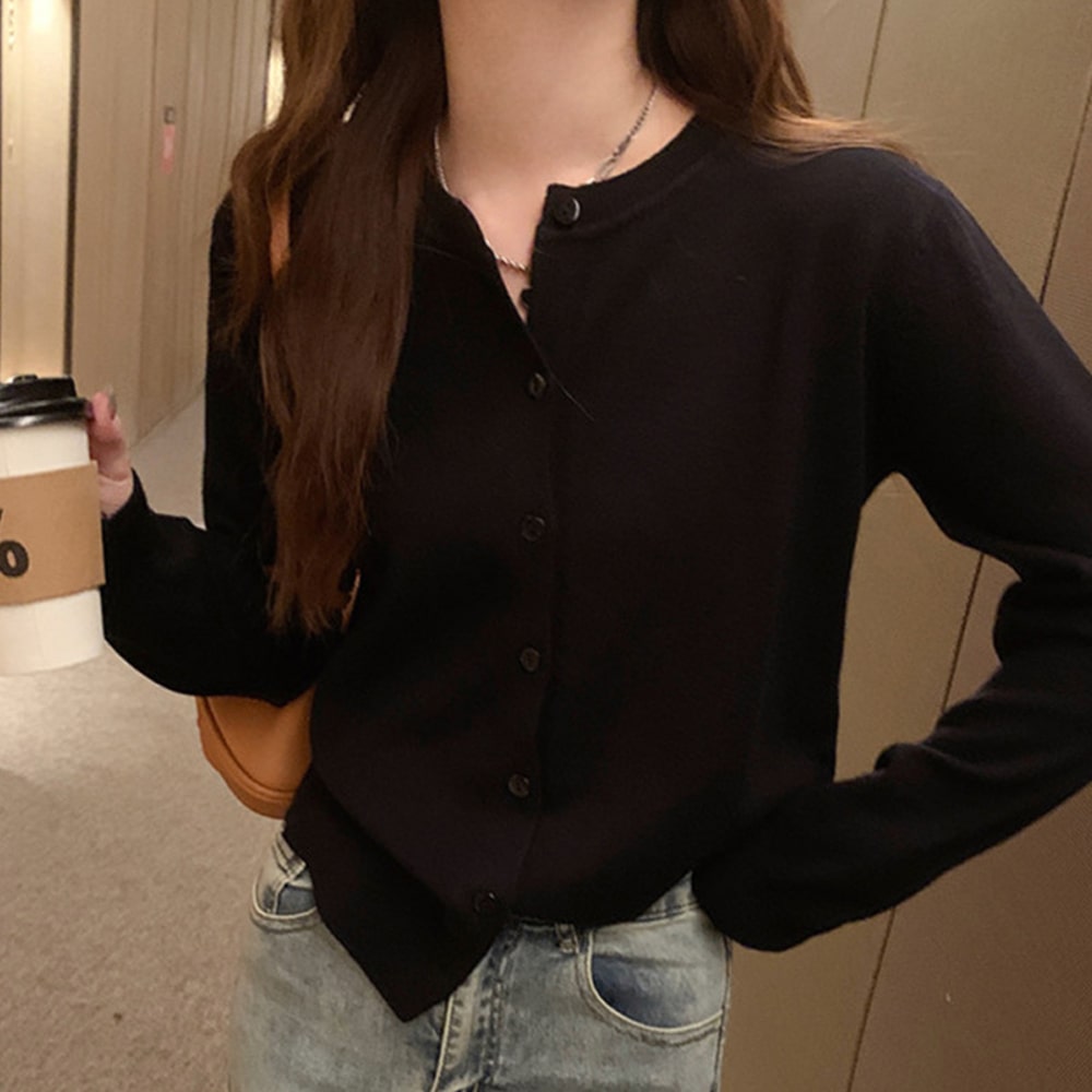 MU크루넥싱글니트가디건 단추가디건 루즈핏 가을 점퍼