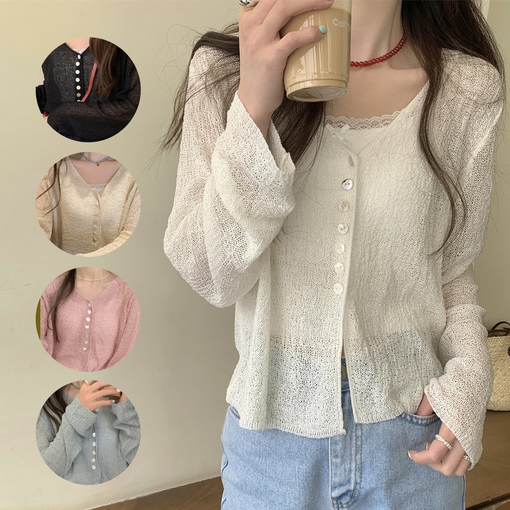 윗단추여리핏니트가디건 여름 브이넥 시스루 루즈핏
