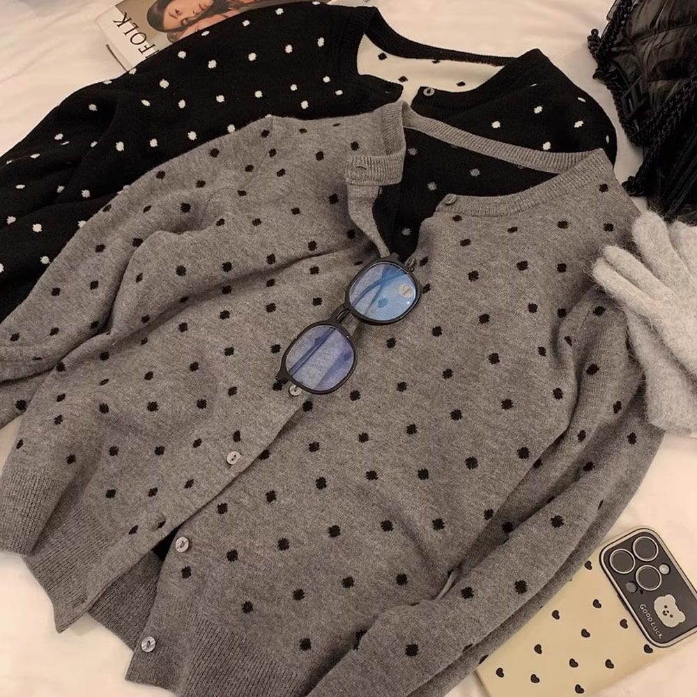 도트가디건 단추가디건 루즈핏 땡땡이가디건 라운드넥