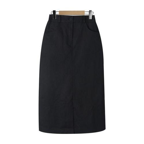 [샵앤]국산 여성 앞트임 H라인 코튼 미디 스커트 STJ-WSK-4868-블랙