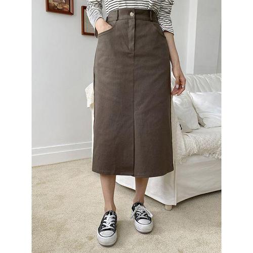 [스판굿] 코튼 슬림핏 h라인 앞트임 슬릿 롱 스커트