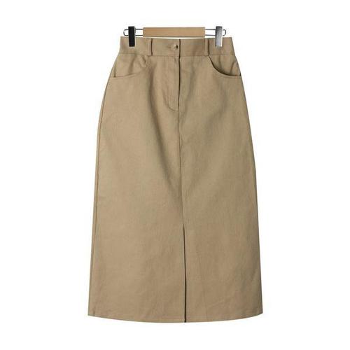 [샵앤]국산 여성 앞트임 H라인 코튼 미디 스커트 STJ-WSK-4868-진베이지