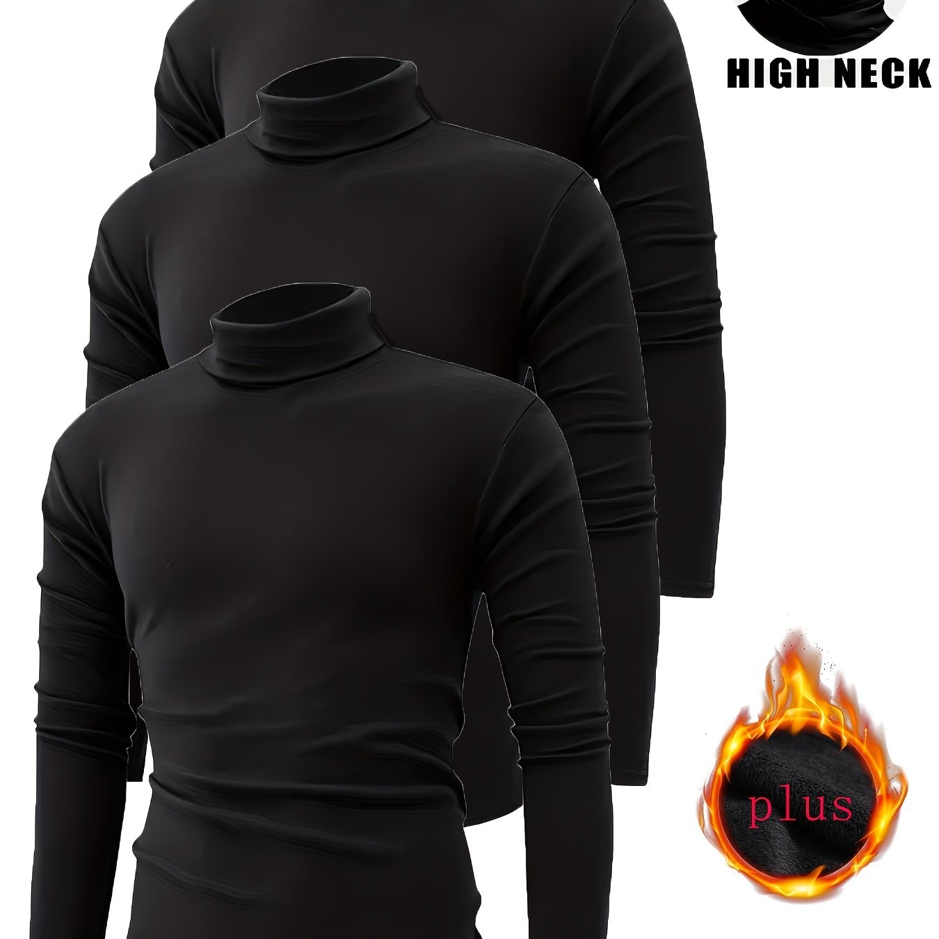 TEMU 3개입 플리스 터틀넥 긴팔 남성용 스포티하고 스타일리시한 따뜻한 핏 탑|스포츠|남자옷|옷