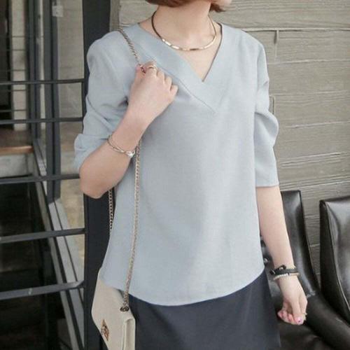[오너클랜]인기상품 여성용 7부 브이넥 셔츠 3컬러 데일리 블라우스 [WFLIFLI_260301]