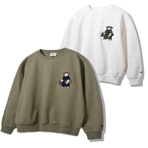 [지프]JO3TSU894 공용 테두리 곰 맨투맨 2024년 기획 카키 티셔