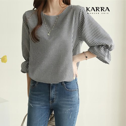 KARRA 플레어커프스체크블라우스_A4S1061