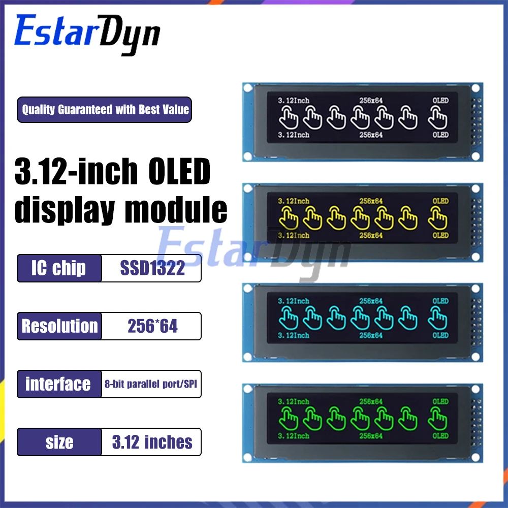 Arduino STM32 Raspberry Pi용 3.12인치 OLED 디스플레이 모듈 SSD1322 256x64, 사전 납땜 핀 헤더가 있는 SPI I2C 인터페이스