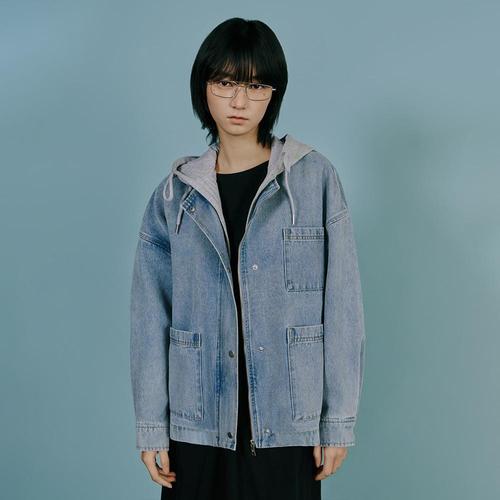 [랩]LAP 랩 후드 배색 워싱 포켓 데님 자켓 AS1DZ260_DG