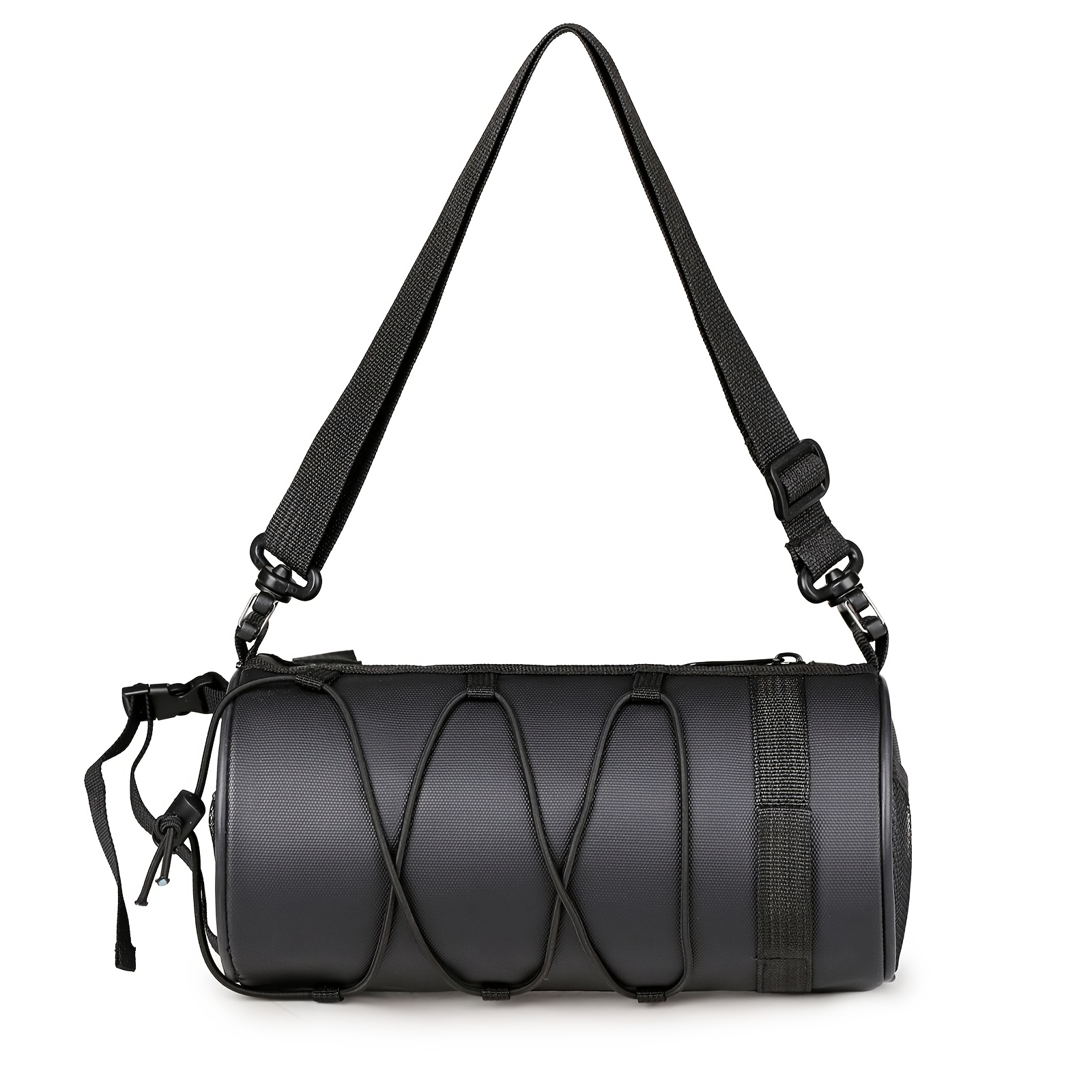 TEMU 대용량 조절형 자전거 핸들바백 - 블랙, 다중 수납공간이 있는 휴대용 사이클링 이품물을 위한 프론트 프레임 튜브 파우치 | 스타일리시한 원통형 디자인, 자전거를 위한 핸들바백, 여성용 자전거 액세서리, 사이클링 가방, 핸들바백, 라이딩 기어, 컴팩트 보관함, 강화된 스티칭, 경량 구조, 아웃도어 애호가 필수템