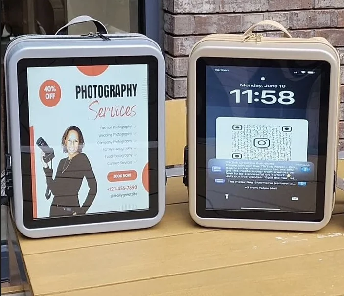 안드로이드 백팩 광고 플레이어 모바일 야외 가방 LCD 화면 배터리 전원 공급 백팩 광고 LED 백팩