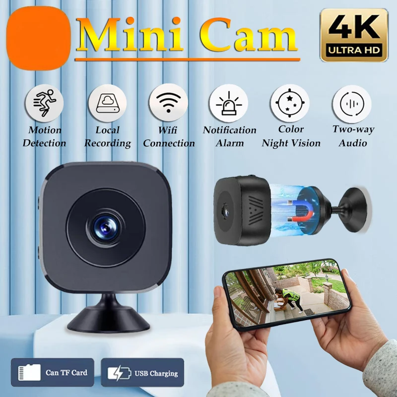 2026년 신제품 4K HD 미니 보안 카메라 프로 WiFi 감시 양방향 오디오 모션 감지 적외선 야간 투시 보안 카메라