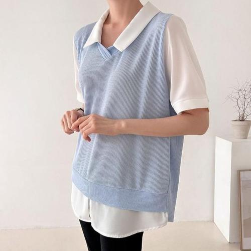 [아이우먼]단비브이배색카라반팔티 BSU180M503 빅사이즈