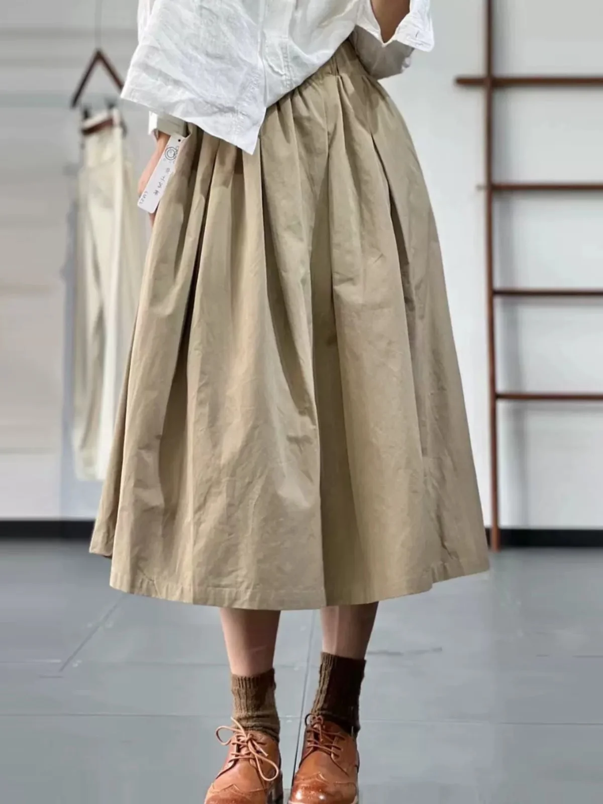 TEMU 레트로 문학 스타일 프린트 미디 스커트, 일본 가을/겨울 신상 하이웨이스트 케이크 스커트, 루즈핏 미디 A라인 스커트